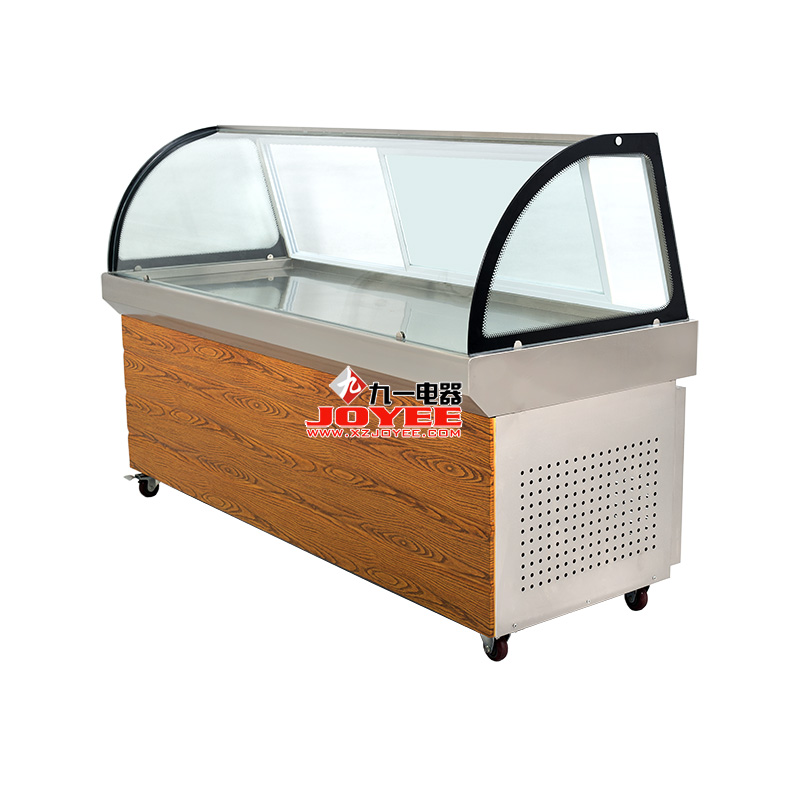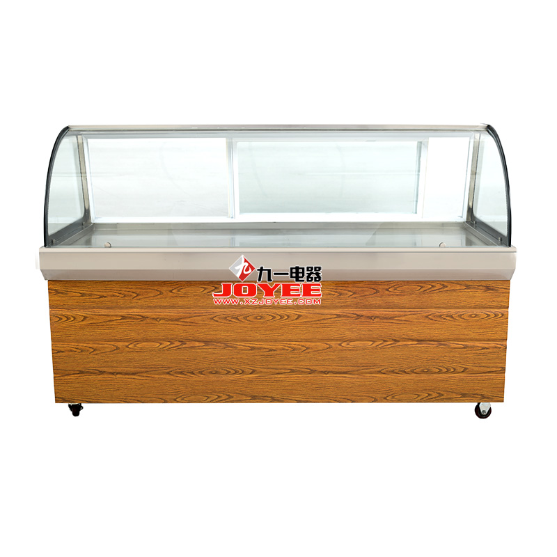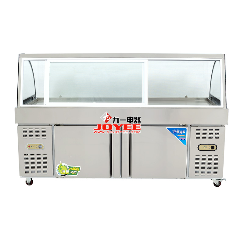 雙壓縮機組,雙溫區(qū)設計,上部冷餐保鮮用于展示售賣,下部低溫冷凍用于儲藏,一臺機器達到兩臺冷柜的功能呢,最新仿木紋裝飾板外觀更時尚。