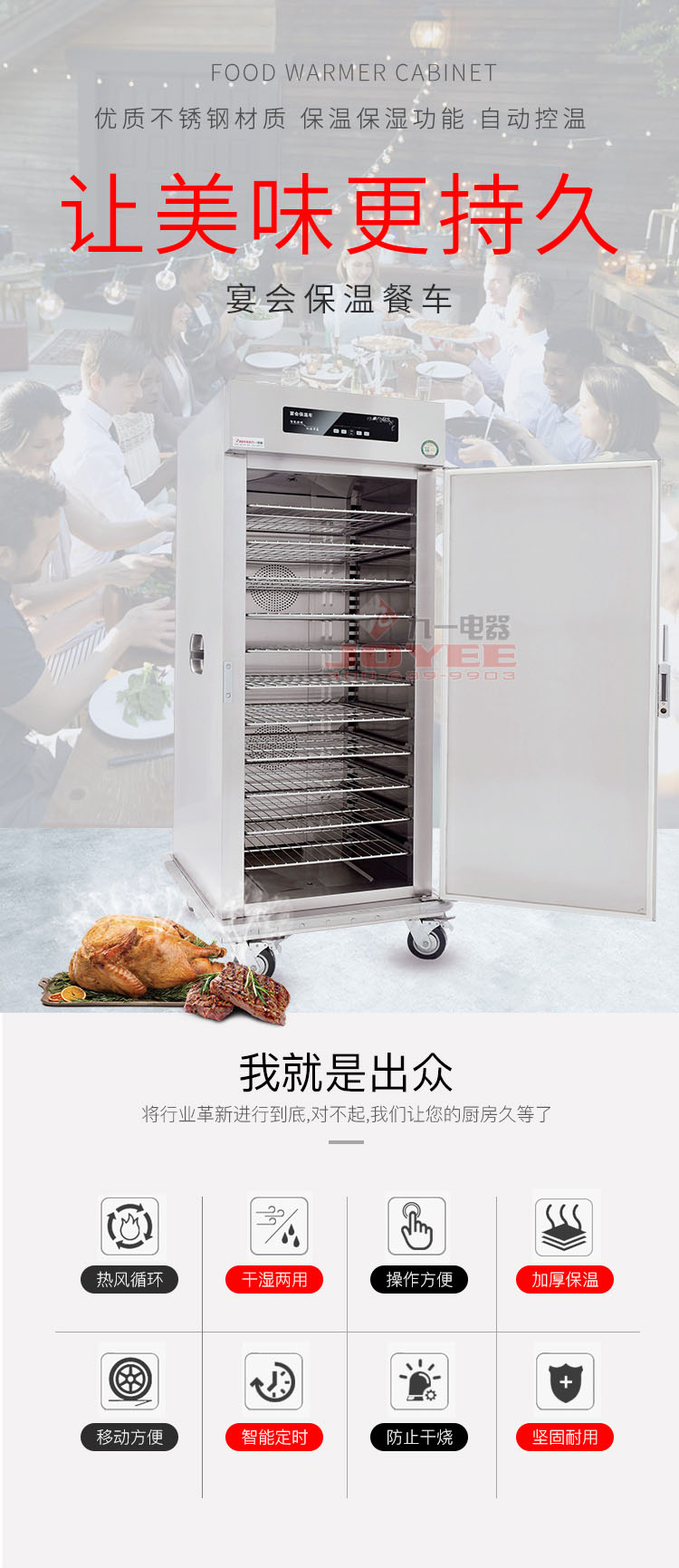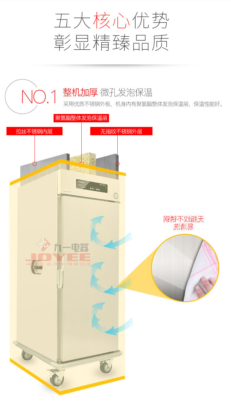 風熱風循環(huán)加熱系統(tǒng),柜內(nèi)加熱快速均勻,全聚氨酯微孔發(fā)泡保溫層保溫效果更佳,11層超大存儲空間,純不銹鋼柜體堅固耐用。